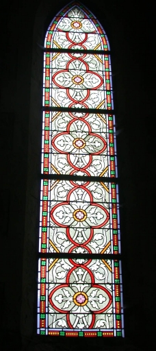 Ensemble des verrières de la nef : Scènes de la vie de la Vierge et verrières décoratives,