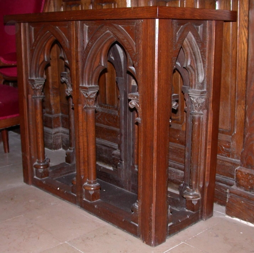 Mobilier de choeur : lambris de demi-revêtement, 2x3 stalles, 2 stalles de célébrant,