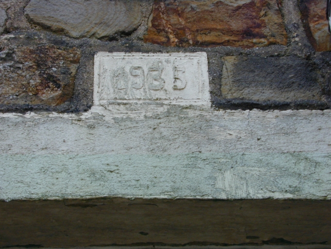Linteau de la porte, date moulée dans le ciment : détailImmatriculation