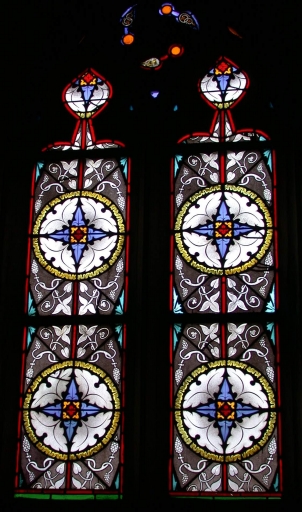 Ensemble des 3 verrières à personnages des baies 1, 2, 4 : Immaculée Conception, Saint Joseph,