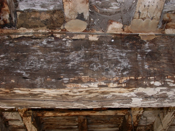 Poutre de la salle, inscription gravée : détailImmatriculation