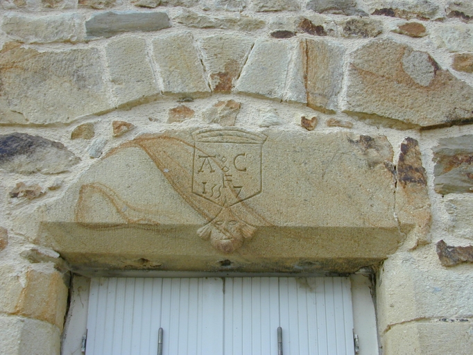 Façade antérieure, linteau de fenêtre gravé d'inscriptions dans un écu : détailImmatriculation