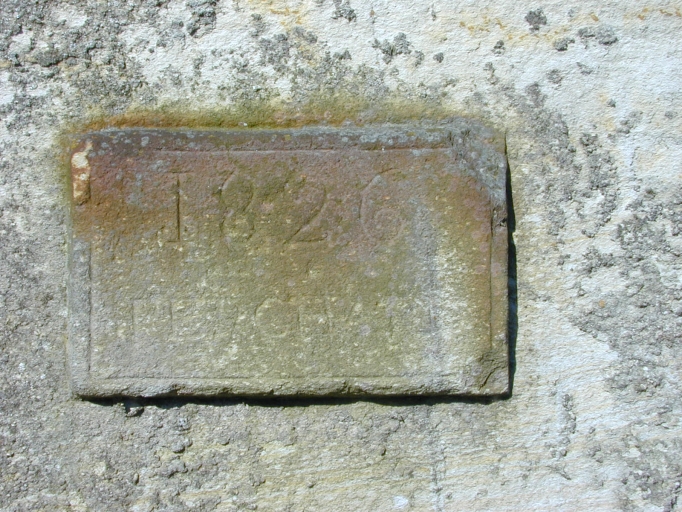 Chapelle flaquant le choeur, pierre gravée de 1826Immatriculation