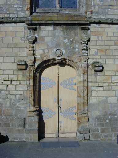Façade sud, détail, porte des fidèlesImmatriculation