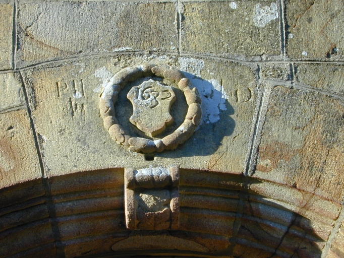 Façade sud, détail, porte de la nef, clef gravée de la date de 1632Immatriculation