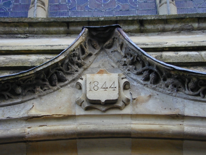 Façade ouest, portail, détail, date de 1844 gravée sur la clefImmatriculation