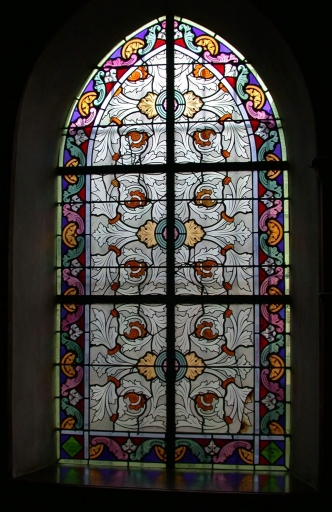 Ensemble des 5 verrières décoratives de la sacristie (baies 3 à 11),