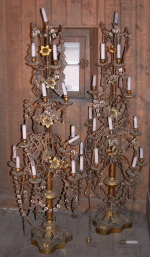 Ensemble d'une exposition et d'une paire de chandeliers d'église,