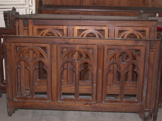 Ensemble de 144 bancs de fidèles et 6 agenouilloirs,