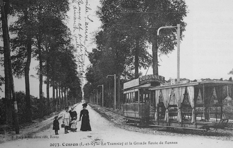 L'arrivée du tramway, rue de Rennes (carte postale du début du 20e siècle)Immatriculation