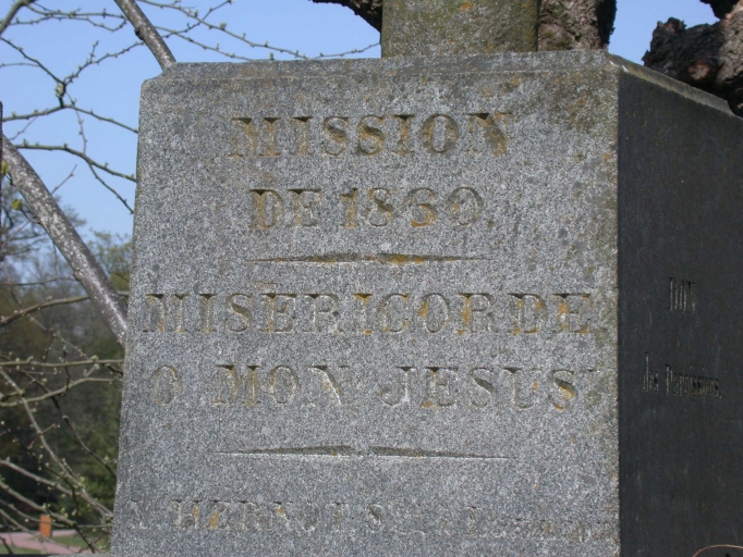 Détail de l'inscription sur le socle de la croixImmatriculation