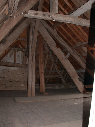 Les combles : détail d'une partie de la charpenteImmatriculation