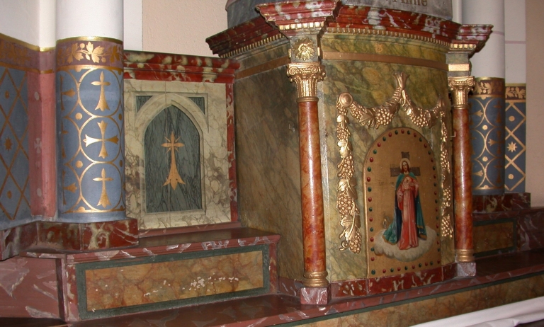 Ensemble de l'autel de sainte Anne : autel, tabernacle, 2 gradins d'autel, exposition,