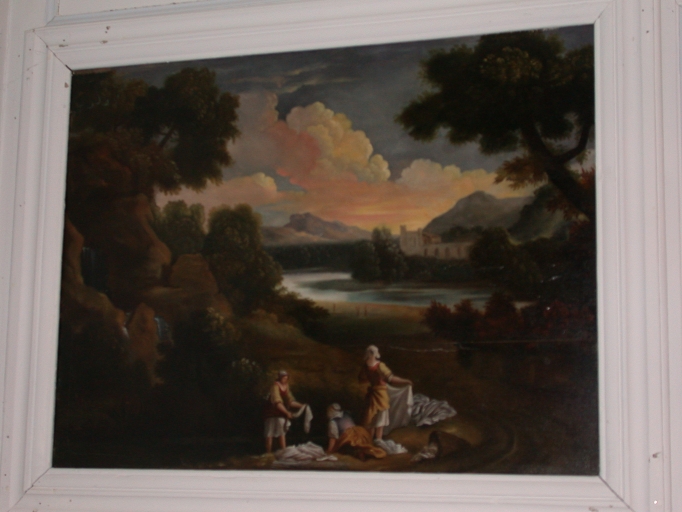 Ensemble de 4 dessus-de-porte : Nature morte, Paysage, Scène dans une cuisine, La déesse de la nuit,