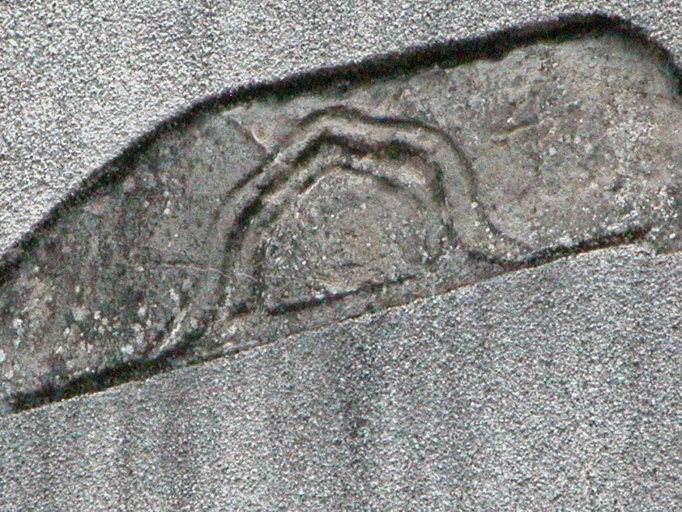 Détail : pierre gravée sur le pignon ouestImmatriculation