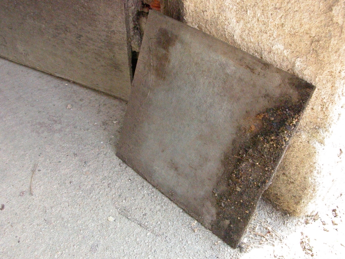 Cuve à cidre, détail : carreau de verre déposéImmatriculation