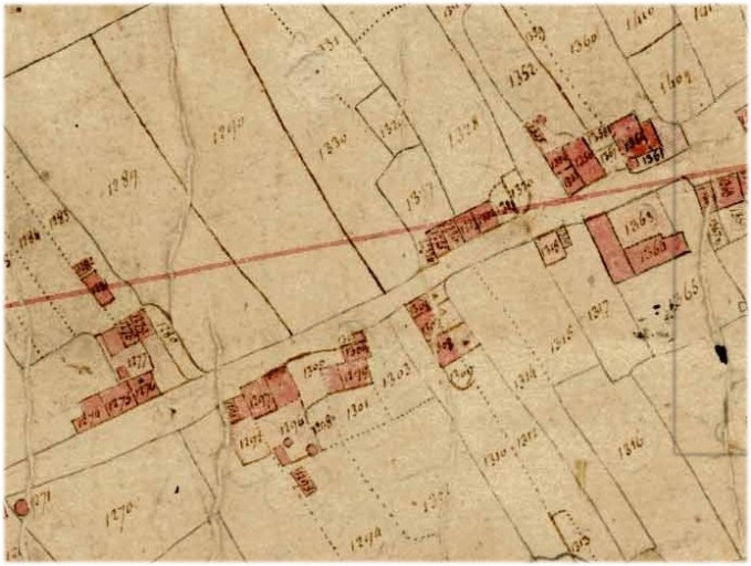 Le presbytère sur le cadastre de 1819 : parcelles 1363-1364Immatriculation