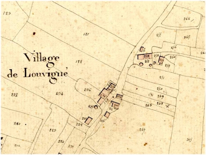 La ferme sur le cadastre de 1819 : parcelles 235-240Immatriculation