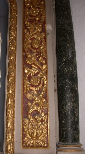 Ensemble de l'autel du Sacré Coeur : autel, tabernacle, 2 gradins d'autel, retable, 2 degrés d'autel,