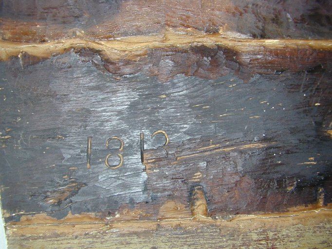 Logis ouest, date gravée sur un palâtre d'une porte intérieure : détailImmatriculation