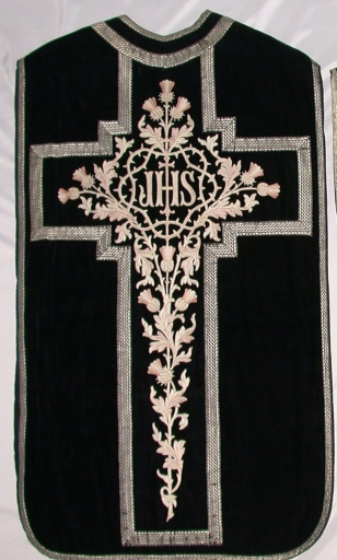 Ornement noir 1 : chasuble, étole, manipule, voile de calice,