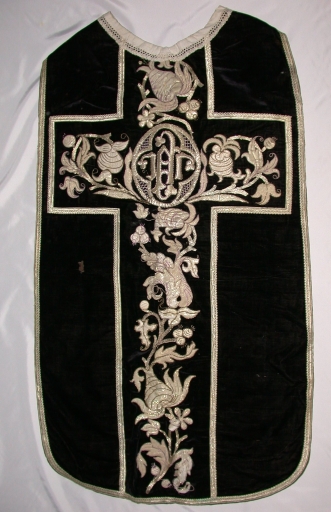 Ornement noir : chasuble, manipule, voile de calice,