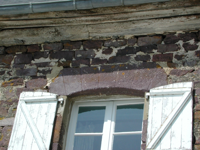 Détail de la façade sud : linteau avec faux claveaux gravésImmatriculation