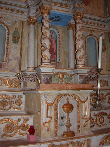 Ensemble du maître-autel : autel, tabernacle, 2 gradins d'autel, exposition, retable, 2 degrés d'autel,