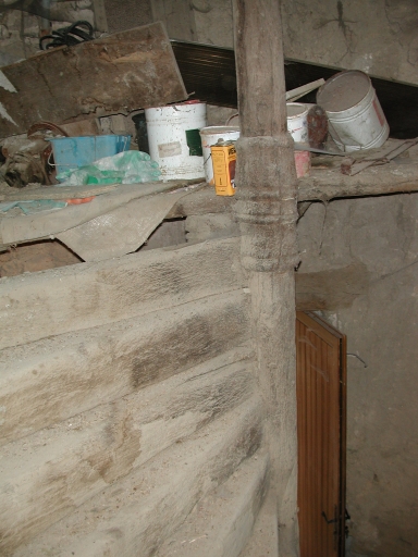 Intérieur : détail de la partie supérieure de la vis de l'escalierImmatriculation