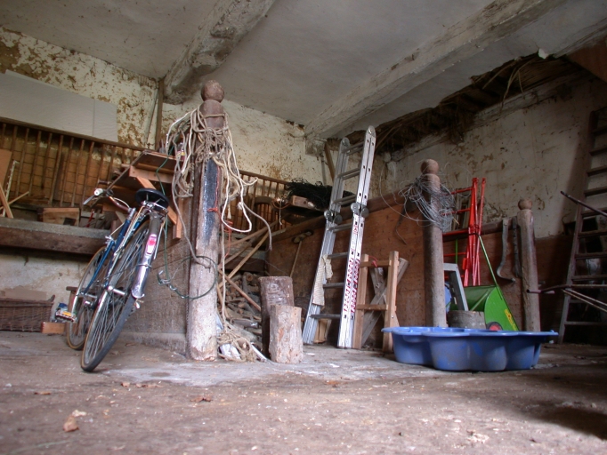 Communs, vue intérieure, détail des boxes à chevauxImmatriculation
