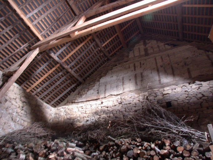 Pignon, partie haute en pan de bois enduitImmatriculation