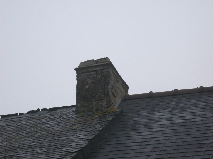 Logis, détail de la cheminée extérieure avec blasonImmatriculation