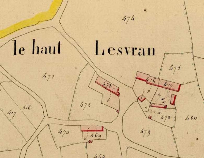 Manoir du Lesvran : extrait du cadastre ancien, 1845Immatriculation