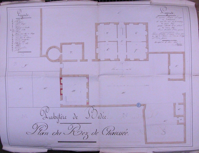 Le plan du presbytère en 1838Immatriculation