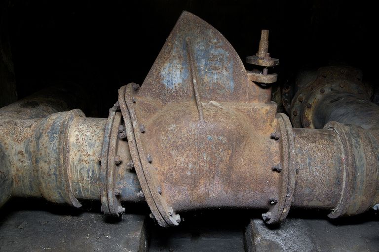 Chambre des robinets-vannes. Détail des vannes.Immatriculation