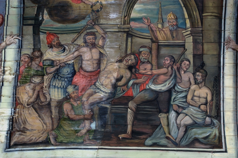 Lambris de couvrement : La conversion de saint-Adrien ; Le martyre de saint-Adrien,