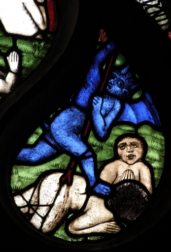 Chapelle Notre-Dame de Locmaria, verrière 6 (portail du transept sud), détail de l'EnferImmatriculation