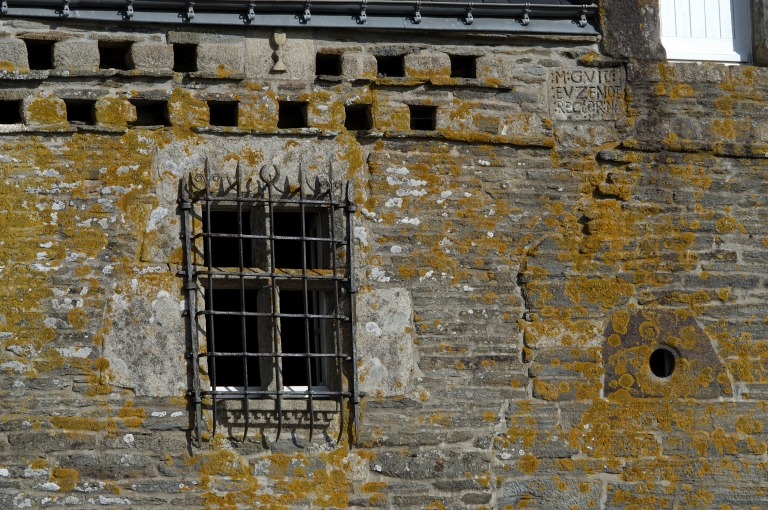 Elévation antérieure, fenêtre de l'étage, pigeonnier et calice sculptéImmatriculation