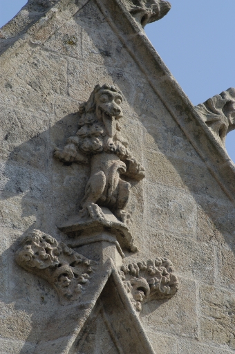 Porche sud, détail du gable.Immatriculation