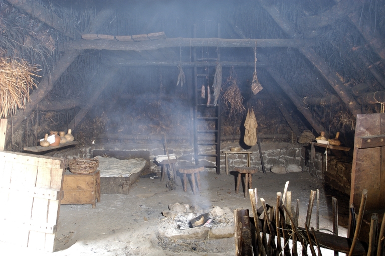 Ferme archéologique de Melrand, village de Lann Gouh, intérieur d'une maisonImmatriculation