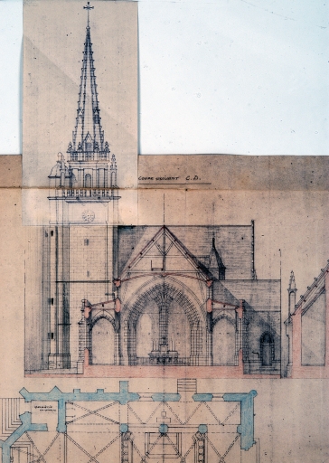 Dessin de Caubert de Cléry, coupe transversale de la chapelle,1911 (A.D. 56, série 2O 10/6, 8)Immatriculation