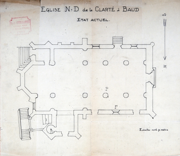 Plan de René Guillaume, plan au sol de la chapelle Notre-Dame de la Clarté, 1924 (A.D. 56, série 2O 10/6, 8)Immatriculation
