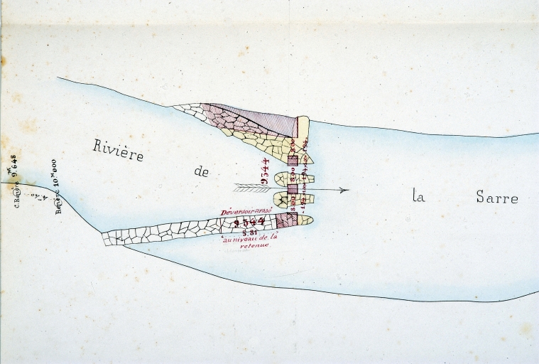Plan de détail de la pêcherie sur la Sarre près du Fos, 1859 ((AD Morbihan, S1100).Immatriculation