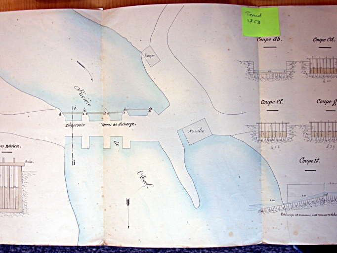 Projet de règlement d'eau : plans de l'usine et de ses abords, 30 avril 1858 (AD Morbihan, S 1062)Immatriculation