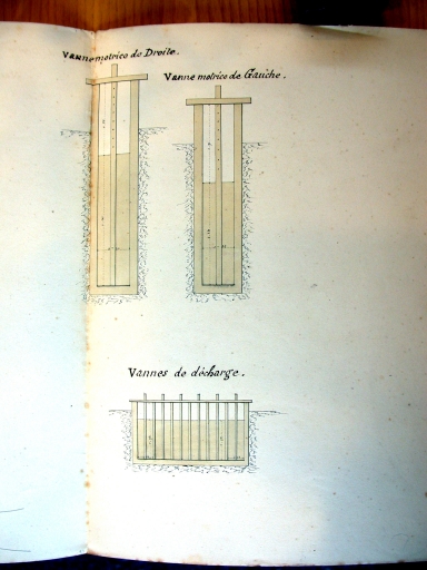 Moulin de Treusac'h. Projet de règlement d'eau : plan des vannes, 22 avril 1858 (AD Morbihan, S 1062)Immatriculation