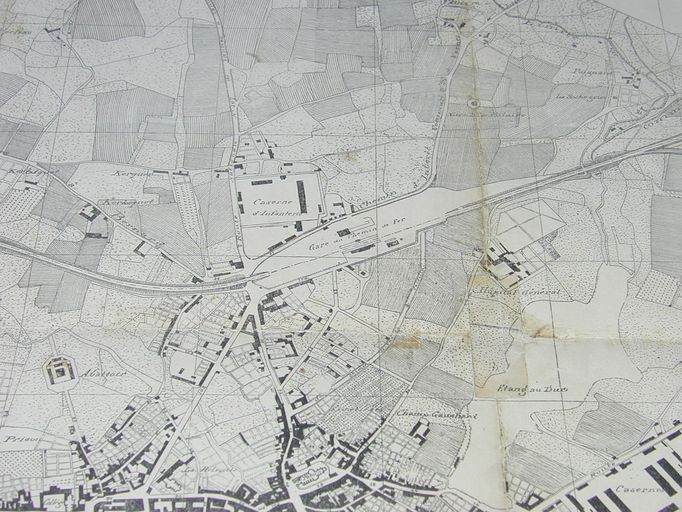 Plan de la ville de Vannes par Léchard, 1897. Vue du quartier de la gare.AM Vannes 9Fi.Immatriculation