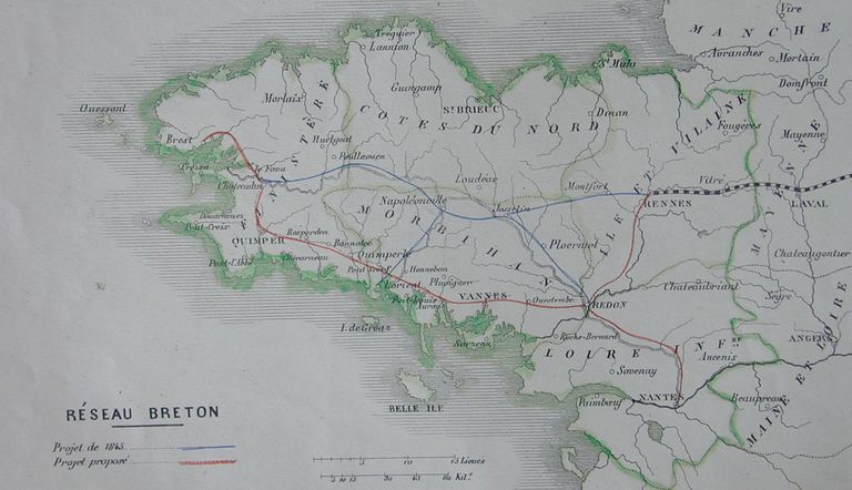 Carte du réseau ferré breton, 1853. AM Vannes 2O223.Immatriculation