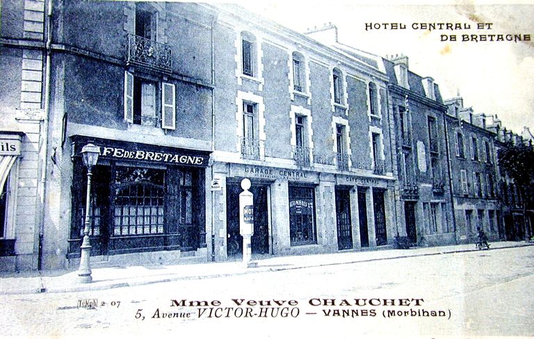 Avenue Victor Hugo : hôtel central et de Bretagne n°5. Carte postale ancienne. AM Vannes 7Fi.Immatriculation