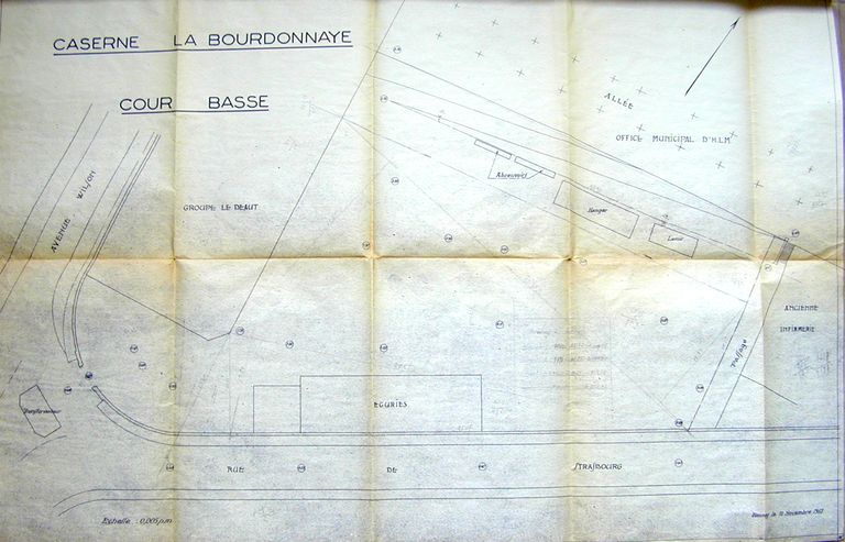 Plan de la cour basse de la caserne vers 1950. AM Vannes 5M204.Immatriculation