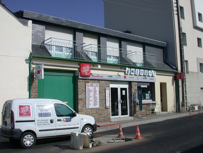 Extension postérieure sur rue, façade modifiée en magasin.Immatriculation